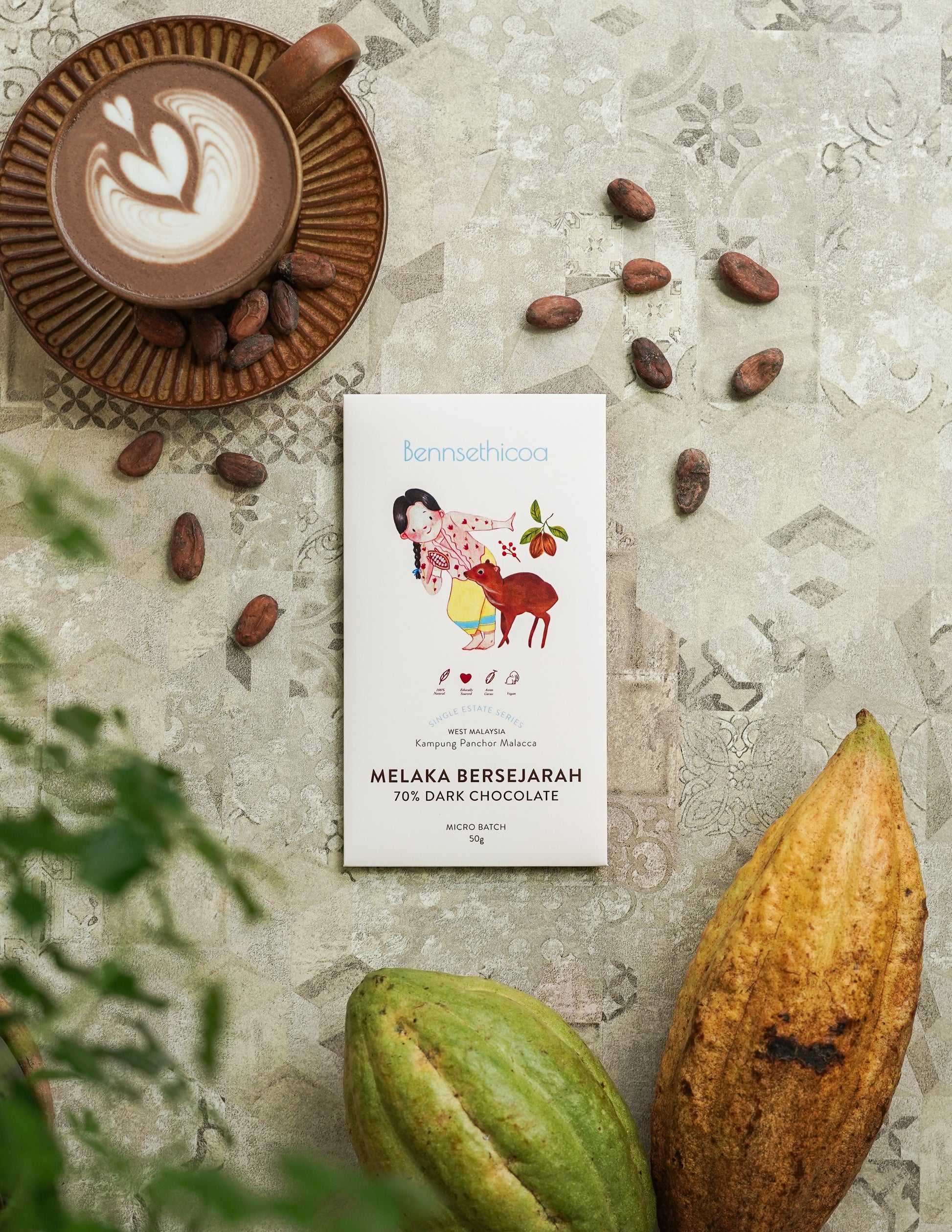 Nestled in Kampung Panchor, Malacca, Mr. Simon Ting carefully cultivates premium cacao, ensuring each bean reflects the rich terroir of this historic land. Inspired by this heritage, Wilfred Ng, founder of Benns Ethicoa Chocolate Factory, crafted an exciting new 70% dark chocolate recipe—a perfect balance of smoothness and depth, honoring the origins of Malaysian cacao.